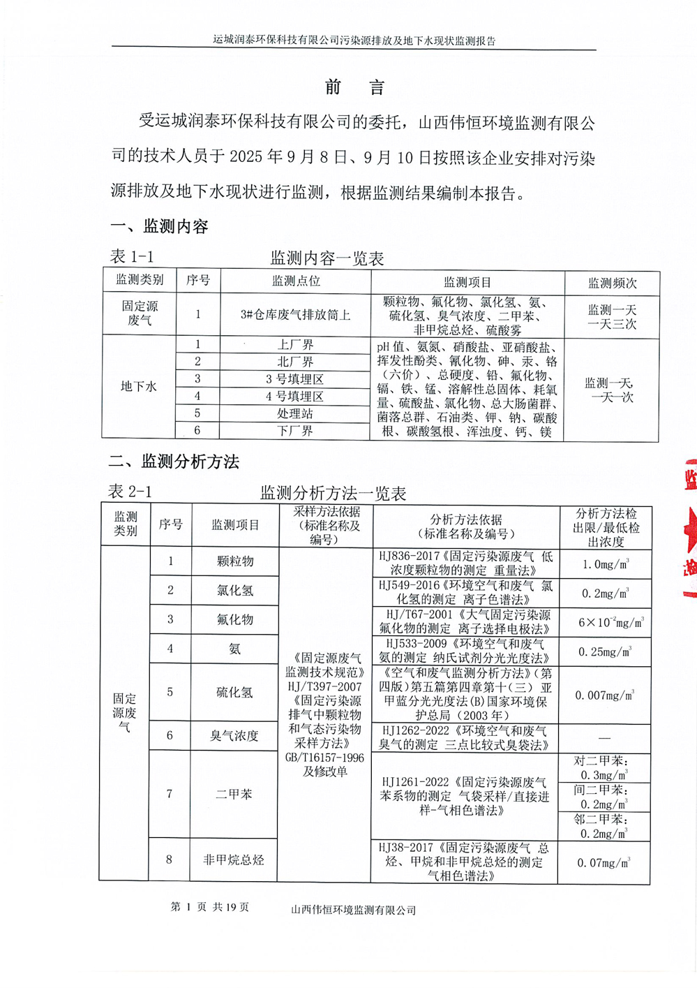2025年潤泰環(huán)保九月份自行監(jiān)測報告