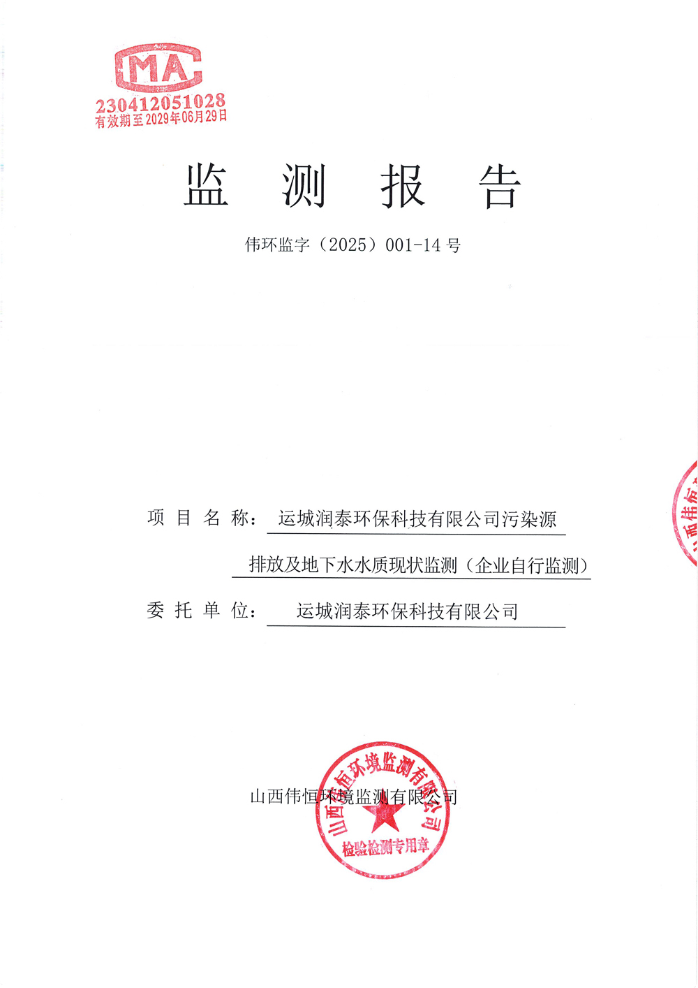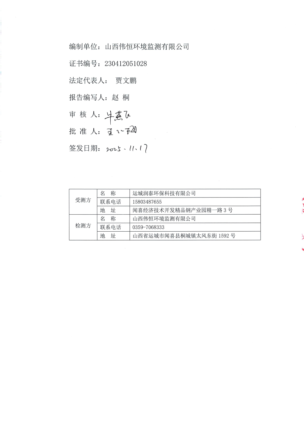 2025年潤(rùn)泰環(huán)保十一月份自行監(jiān)測(cè)報(bào)告