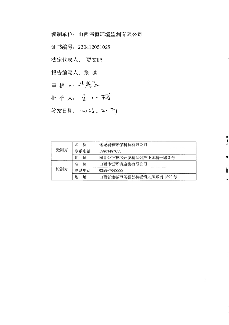 2026年潤(rùn)泰環(huán)保二月份自行監(jiān)測(cè)報(bào)告