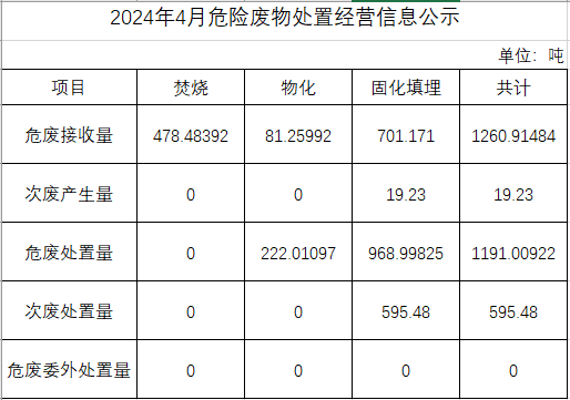 4月危險(xiǎn)廢物處置經(jīng)營(yíng)信息公示